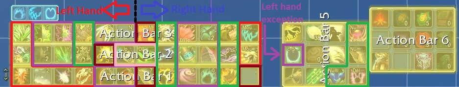 As well this configuration are intended to be aligned the action bar with the keyboard keybinding (most possible without struggle too much), for example in my game style the action bars and the regions are something like this: