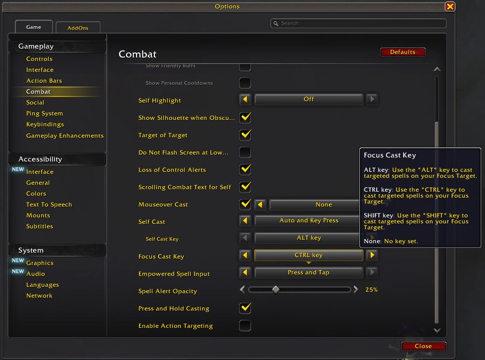 Options → Gameplay → Combat → Focus Cast Key