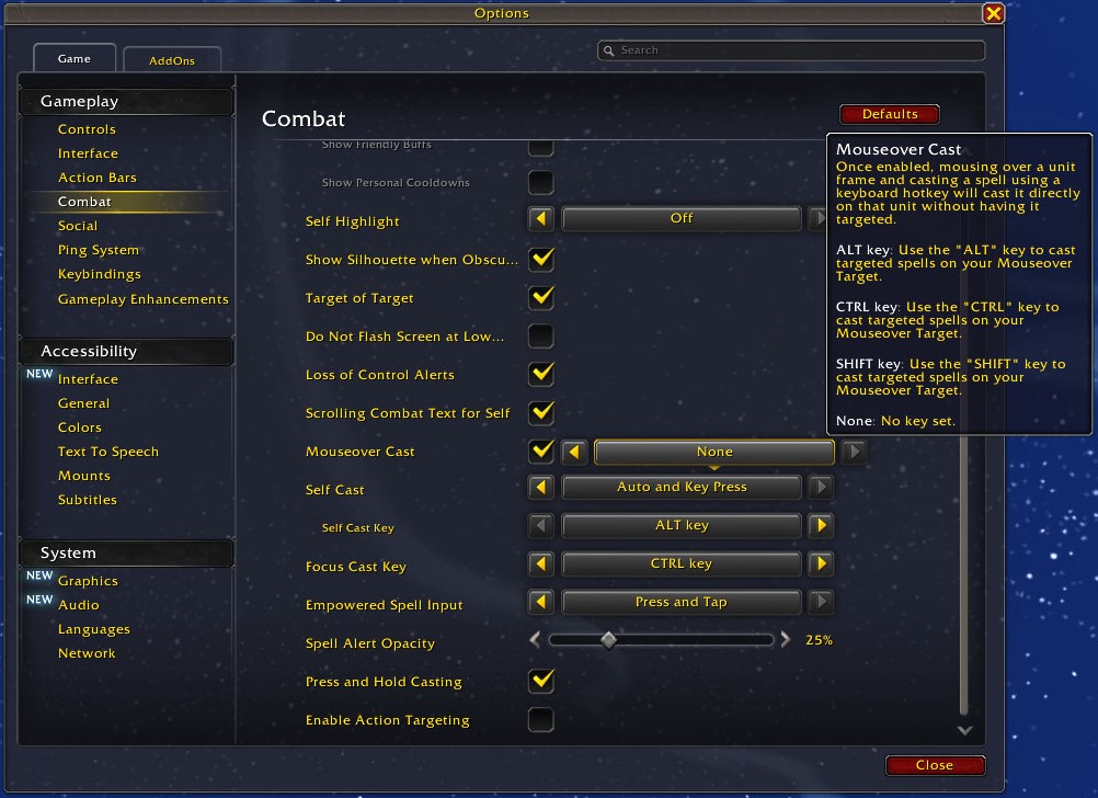 Options → Gameplay → Combat → Mouseover Cast